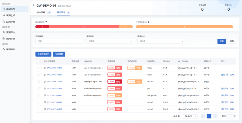 多种漏洞评估模型:支持CVSS、汽车信息安全漏洞评价规范等评估模型,自动计算漏洞等级