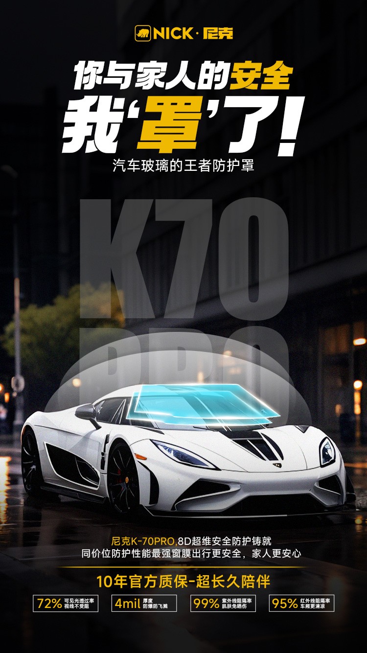 产品层面,2025NICK尼克发布两款极具竞争力的产品。尼克5G新能源窗膜K-70PRO,主打高性价比高防护,拥有同价位最强防护性能。