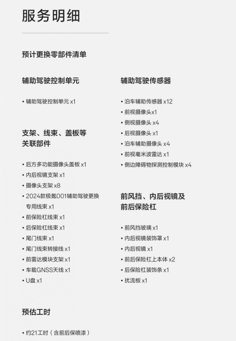 (2024款极氪001辅助驾驶更换-部分零部件样件)