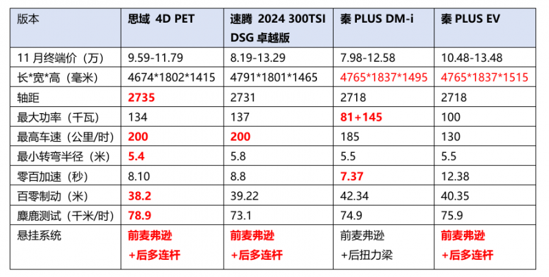 一辆车最基础的功能必然要满足速度和操控,从赛道走向民用车领域的思域,在这方面自然更优秀一些,在四款车中拥有最高车速、最小转弯半径和最短制动距离,而其他车型也有着各自的优势。